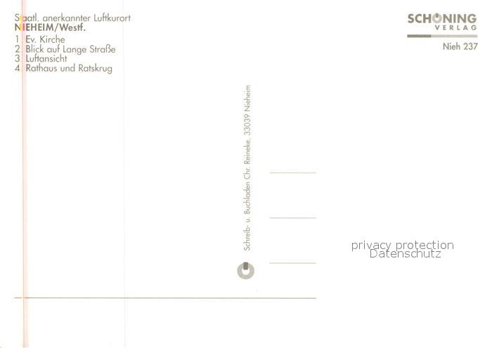 73213772 Nieheim Ev Kirche Lange Strasse Fliegeraufnahme Rathaus und Ratskrug postalisch nicht gelaufen Erhaltung siehe scans [WerneD78] KatCode: 11110005762028