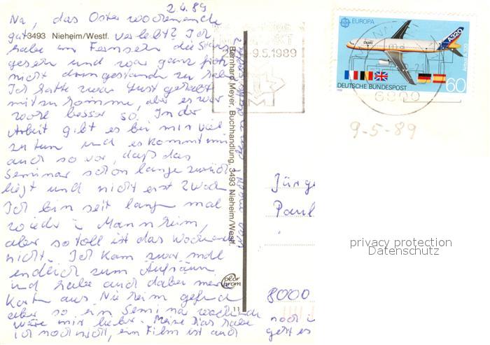 73074105 alte Postkarte Nieheim Panorama Kurviertel Marktstrasse postalisch gelaufen Erhaltung siehe scans [WerneD78] KatCode: 11110005762028