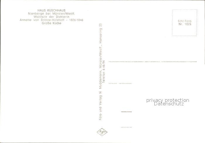 72077479 Nienberge Muenster Westfalen Haus Rueschhaus Kueche Wohnsitz Dichterin von Droste Huelshoff postalisch nicht gelaufen Erhaltung siehe scans KatCode: 11110005515000