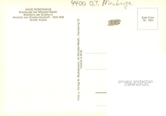 73700921 Nienberge Muenster Westfalen Haus Rueschhaus Kueche Wohnsitz von Annette von Droste Huelshoff postalisch nicht gelaufen Erhaltung siehe scans [FriedD77] KatCode: 11110005515000