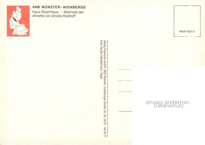 73158135 Nienberge Muenster Westfalen Haus Rueschhaus Wohnsitz der Annette von Droste Huelshoff postalisch nicht gelaufen Erhaltung siehe scans [WerneD78] KatCode: 11110005515000