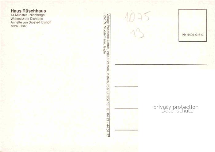 72781854 Nienberge Muenster Westfalen Haus Rueschhaus Wohnsitz der Dichterin Annette von Droste Huelshoff postalisch nicht gelaufen Erhaltung siehe scans [FriedD77] KatCode: 11110005515000