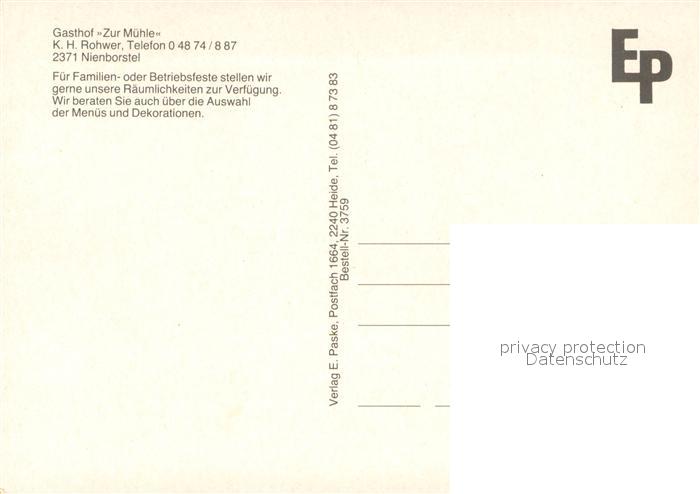 73731196 Nienborstel Gasthof zur Muehle Festsaal Garten postalisch nicht gelaufen Erhaltung siehe scans [FriedD77] KatCode: 11110001058113