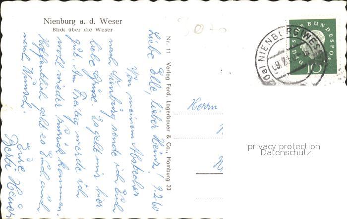 71831445 alte Postkarte Nienburg Weser Blick ueber die Weser postalisch gelaufen Erhaltung siehe scans KatCode: 11110003256022