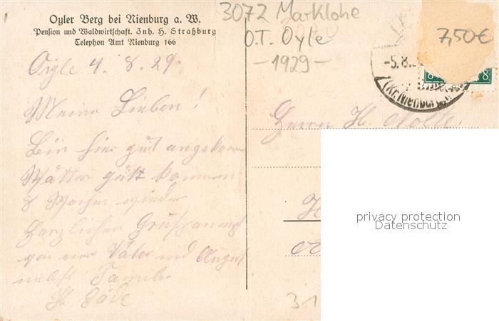 73690611 alte Postkarte Nienburg Weser Denkstein der Vereinigten Norddeutschen Liedertafeln postalisch gelaufen Erhaltung siehe scans [WerneD78] KatCode: 11110003256022