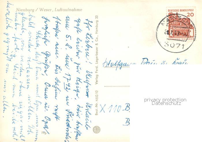 73754498 alte Postkarte Nienburg Weser Fliegeraufnahme postalisch gelaufen Erhaltung siehe scans [FriedD77] KatCode: 11110003256022