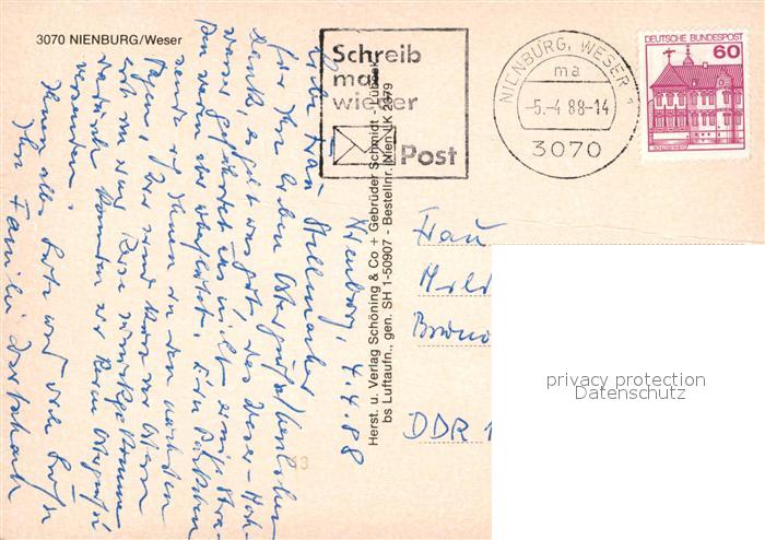 73600026 alte Postkarte Nienburg Weser Fliegeraufnahme postalisch gelaufen Erhaltung siehe scans [FriedD77] KatCode: 11110003256022
