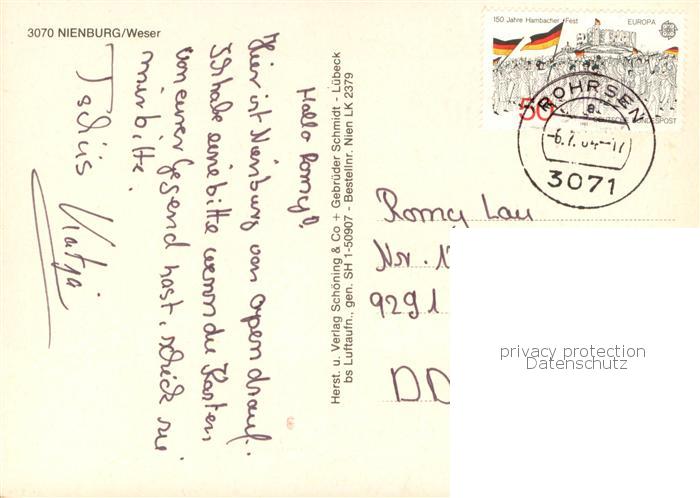 73761173 alte Postkarte Nienburg Weser Fliegeraufnahme postalisch gelaufen Erhaltung siehe scans [WerneD78] KatCode: 11110003256022