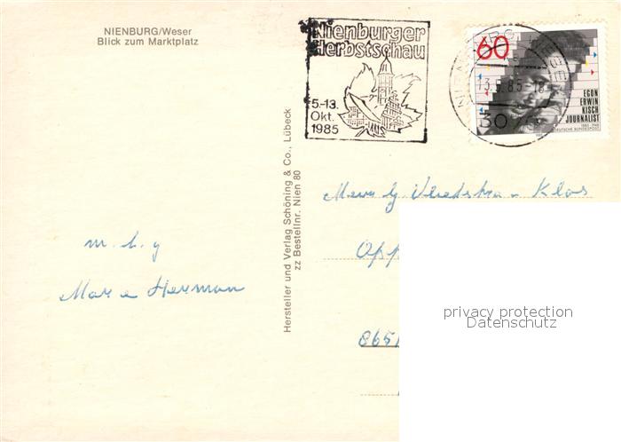 72945118 alte Postkarte Nienburg Weser Marktplatz postalisch gelaufen Erhaltung siehe scans [WerneD78] KatCode: 11110003256022