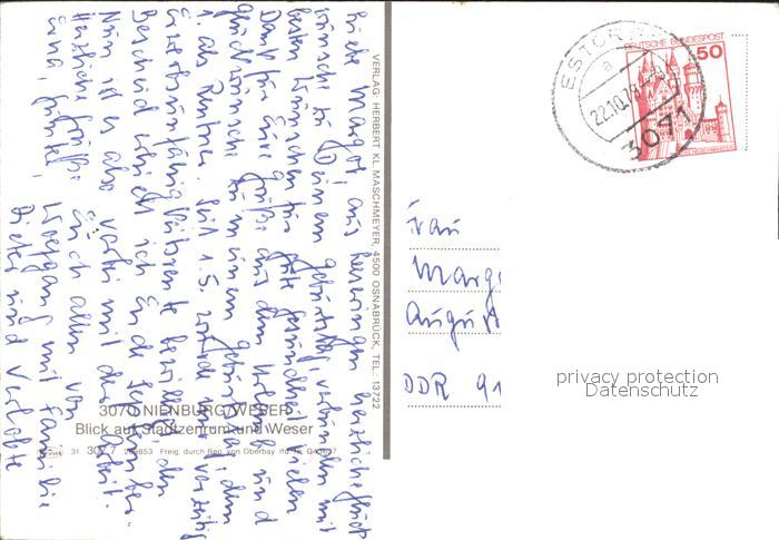 71937764 alte Postkarte Nienburg Weser Stadtzentrum Weser postalisch gelaufen Erhaltung siehe scans KatCode: 11110003256022