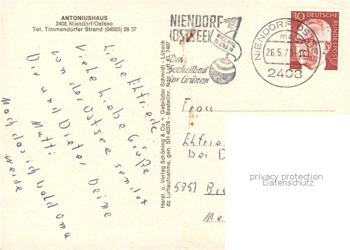73105510 alte Postkarte Niendorf Ostseebad Antoniushaus postalisch gelaufen Erhaltung siehe scans [WerneD78] KatCode: 11110001055042