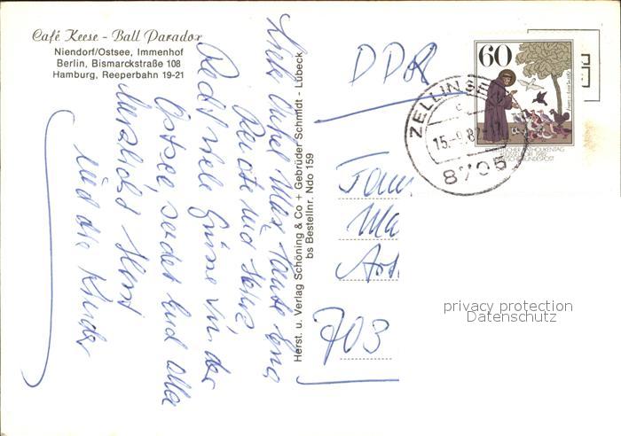 72515538 alte Postkarte Niendorf Ostseebad Cafe Keese Ball Paradox postalisch gelaufen Erhaltung siehe scans KatCode: 11110001055042