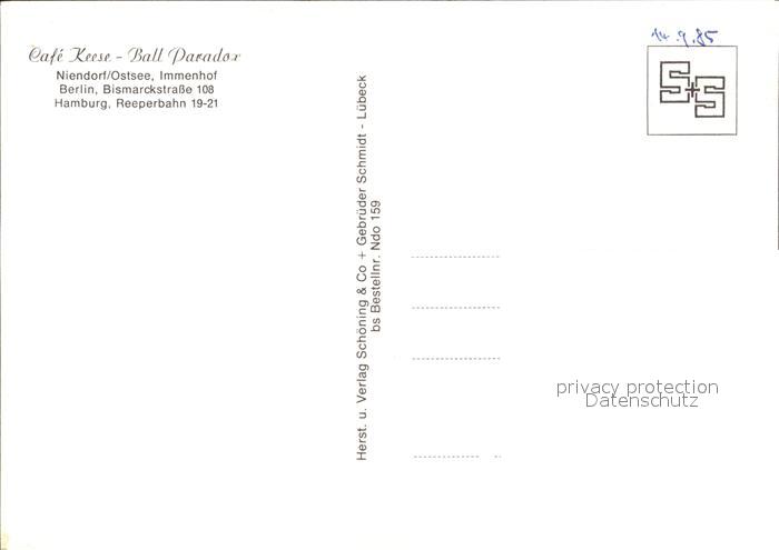 72312505 Niendorf Ostseebad Cafe Keese Ball Paradox postalisch nicht gelaufen Erhaltung siehe scans KatCode: 11110001055042