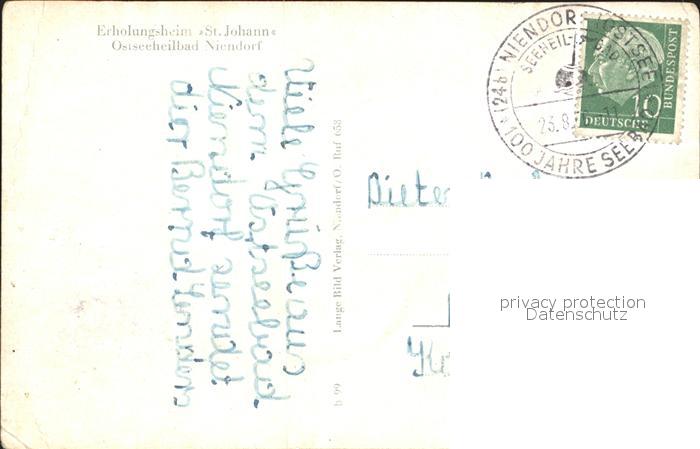 72028622 alte Postkarte Niendorf Ostseebad Erholungsheim St Johann postalisch gelaufen Erhaltung siehe scans KatCode: 11110001055042