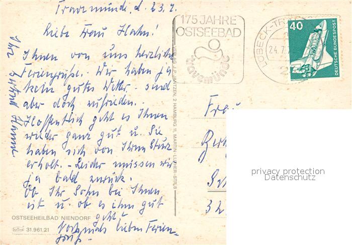 73093728 alte Postkarte Niendorf Ostseebad Fliegeraufnahme postalisch gelaufen Erhaltung siehe scans [NatalD47] KatCode: 11110001055042
