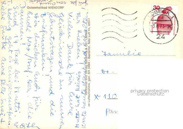 72823406 alte Postkarte Niendorf Ostseebad Fliegeraufnahme postalisch gelaufen Erhaltung siehe scans [FriedD77] KatCode: 11110001055042