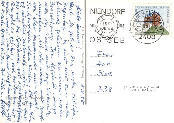 73127247 alte Postkarte Niendorf Ostseebad Fliegeraufnahme mit Strand Seebruecke postalisch gelaufen Erhaltung siehe scans [LiesaD40] KatCode: 11110001055042