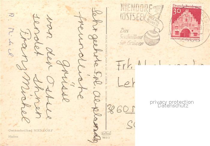 73227145 alte Postkarte Niendorf Ostseebad Hafen Fischkutter postalisch gelaufen Erhaltung siehe scans [FriedD77] KatCode: 11110001055042