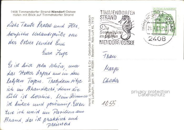72496563 alte Postkarte Niendorf Ostseebad Hafen mit Blick auf Timmendorfer Strand Fliegeraufnahme postalisch gelaufen Erhaltung siehe scans KatCode: 11110001055042