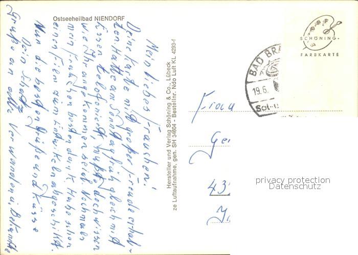 72535899 alte Postkarte Niendorf Ostseebad Seebruecke Strand Fliegeraufnahme postalisch gelaufen Erhaltung siehe scans [FriedD77 kt118box] KatCode: 11110001055042