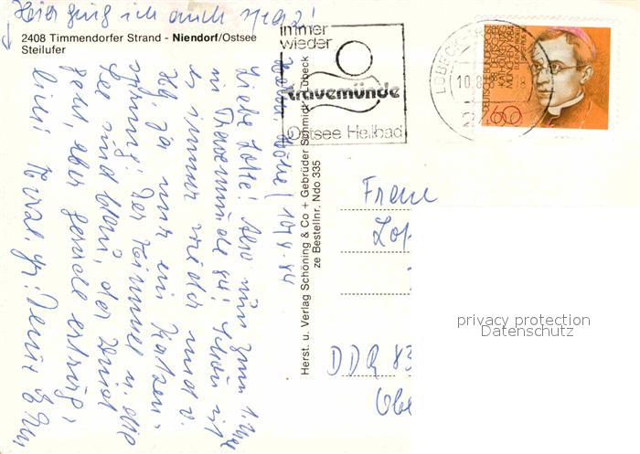 72631403 alte Postkarte Niendorf Ostseebad Timmendorfer-Strand Steilufer postalisch gelaufen Erhaltung siehe scans [LiesaD40] KatCode: 11110001055042