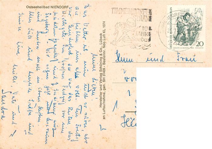 73904454 alte Postkarte Niendorf Ostseebad Timmendorferstrand Fliegeraufnahme postalisch gelaufen Erhaltung siehe scans [WerneD78] KatCode: 11110001055042