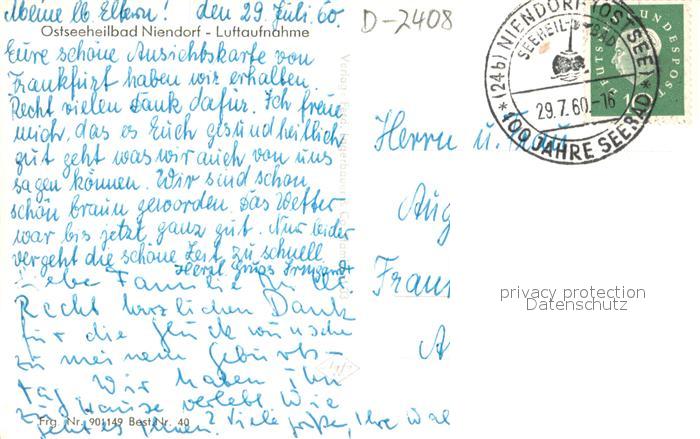73748846 alte Postkarte Niendorf Ostseebad Timmendorferstrand Fliegeraufnahme postalisch gelaufen Erhaltung siehe scans [WerneD78] KatCode: 11110001055042