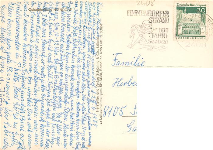 73940432 alte Postkarte Niendorf Ostseebad Timmendorferstrand Fliegeraufnahme postalisch gelaufen Erhaltung siehe scans [FriedD77] KatCode: 11110001055042