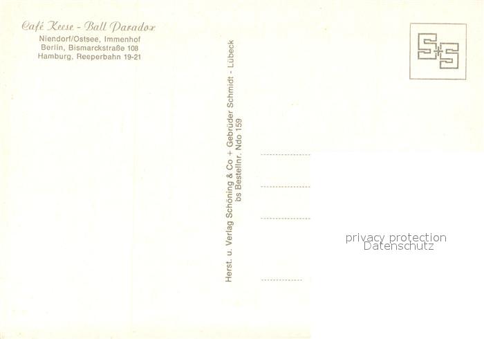73712142 Niendorf Timmendorfer Strand Cafe Keese Ball Paradox postalisch nicht gelaufen Erhaltung siehe scans [WerneD78] KatCode: 11110001055042