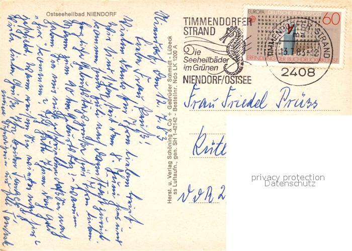 73011059 alte Postkarte Niendorf Timmendorfer Strand Fliegeraufnahme postalisch gelaufen Erhaltung siehe scans [WerneD78] KatCode: 11110001055042