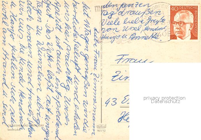 73312021 alte Postkarte Niendorf Timmendorfer Strand Seebruecke postalisch gelaufen Erhaltung siehe scans [NatalD47] KatCode: 11110001055042
