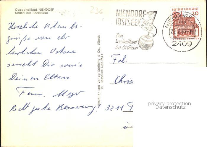 72606192 alte Postkarte Niendorf Timmendorfer Strand Strand mit Seebruecke postalisch gelaufen Erhaltung siehe scans [AndreD76] KatCode: 11110001055042