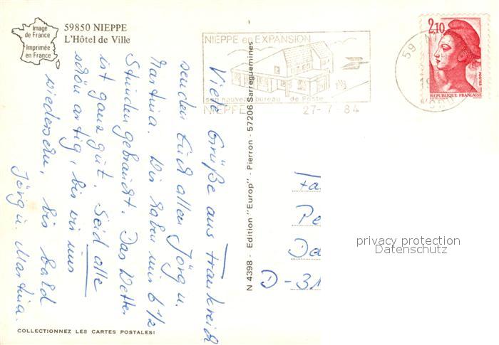 13306421 carte postale Nieppe Hotel de Ville postalisch gelaufen Erhaltung siehe scans [FriedD77] KatCode: 11170059459431