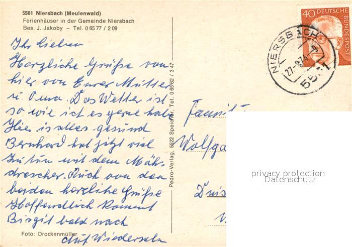 73312018 alte Postkarte Niersbach Ferienhaeuser postalisch gelaufen Erhaltung siehe scans [NatalD47] KatCode: 11110007231504