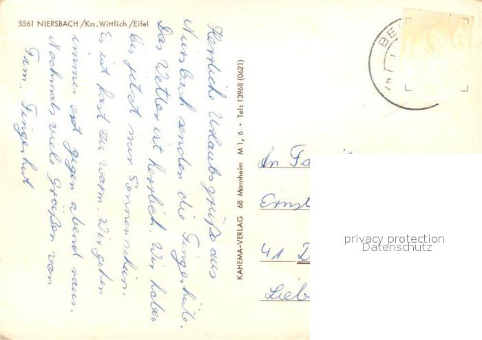 73312019 alte Postkarte Niersbach postalisch gelaufen Erhaltung siehe scans [NatalD47] KatCode: 11110007231504
