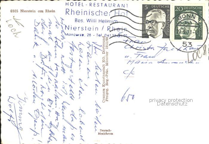72446802 alte Postkarte Nierstein Rhein Fliegeraufnahme postalisch gelaufen Erhaltung siehe scans KatCode: 11110007339043