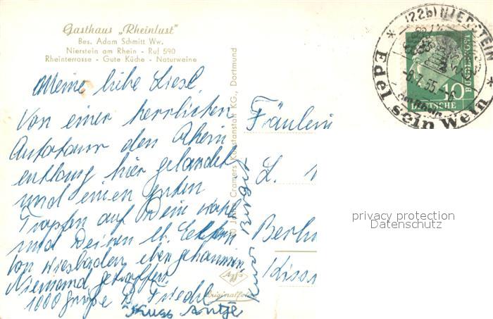 73640998 alte Postkarte Nierstein Rhein Gasthaus Rheinlust Rheinterrasse postalisch gelaufen Erhaltung siehe scans [WerneD78] KatCode: 11110007339043