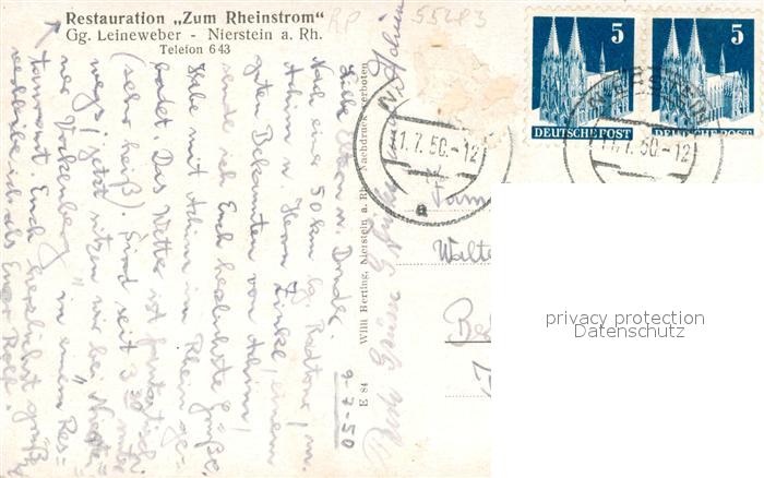 33665101 alte Postkarte Nierstein Rhein Restauration Zum Rheinstrom Uferansicht Frachtkahn postalisch gelaufen Erhaltung siehe scans [FriedD77] KatCode: 11110007339043