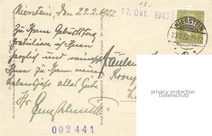 74130725 alte Postkarte Nierstein Rhein Rheinland-Pfalz Panorama postalisch gelaufen Fliegeraufnahme Erhaltung siehe scans [FriedD77] KatCode: 11110007339043