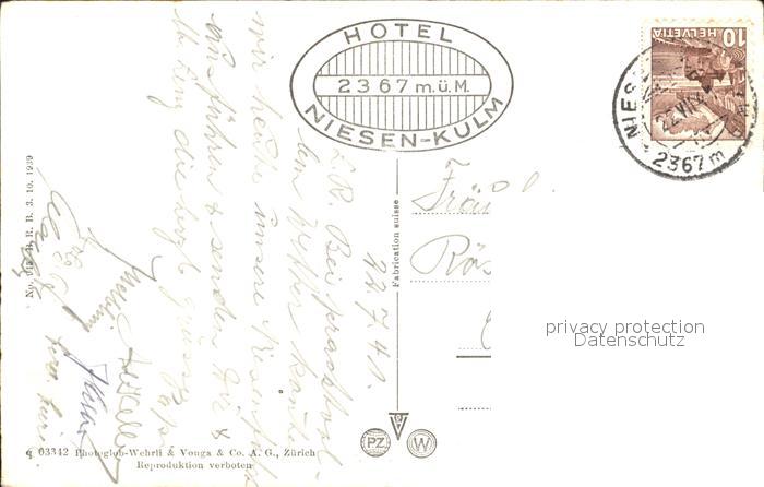 12055539 alte Postkarte Niesen Kulm Hotelterrasse postalisch gelaufen Erhaltung siehe scans KatCode: 11470060170220
