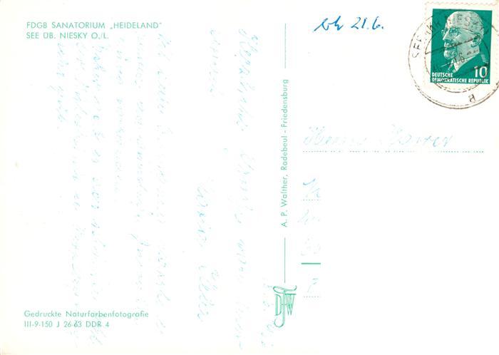 73890112 alte Postkarte Niesky Oberlausitz Sachsen FDGB Sanatorium Heideland postalisch gelaufen Erhaltung siehe scans [WerneD78] KatCode: 11110014284280
