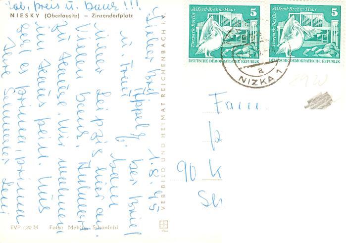73887312 alte Postkarte Niesky Oberlausitz Sachsen Zinzendorfplatz postalisch gelaufen Erhaltung siehe scans [FriedD77] KatCode: 11110014284280