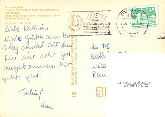 73081223 alte Postkarte Niesky Zinzendorfplatz Denkmal Naherholung Badestrand Kinderkrippe Strasse der Befreiung postalisch gelaufen Erhaltung siehe scans [FriedD77] KatCode: 11110014284280