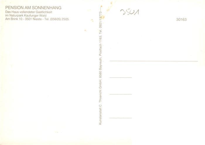 73935603 Nieste Hessen Pension am Sonnenhang Naturpark Kaufunger Wald postalisch nicht gelaufen Fliegeraufnahme Erhaltung siehe scans [FriedD77] KatCode: 11110006633019