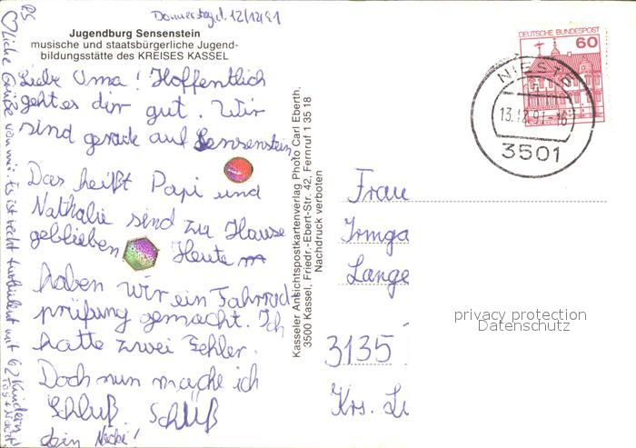 71946853 alte Postkarte Nieste Jugendburg Sensenstein postalisch gelaufen Erhaltung siehe scans KatCode: 11110006633019