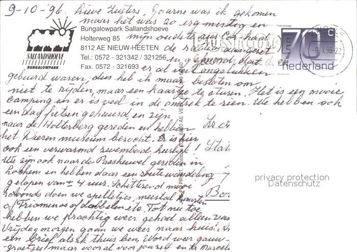 old postcard Nieuw Heeten Bungalowpark Sallandshoeve Gastraum Terrasse Radweg postalisch gelaufen Erhaltung siehe scans