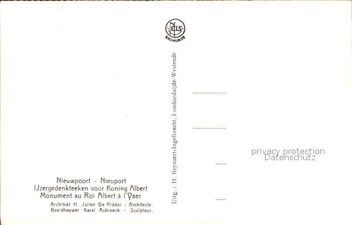 Nieuwpoort Molenwaard Uzergedenkteeken vor Koning Albert postalisch nicht gelaufen Erhaltung siehe scans