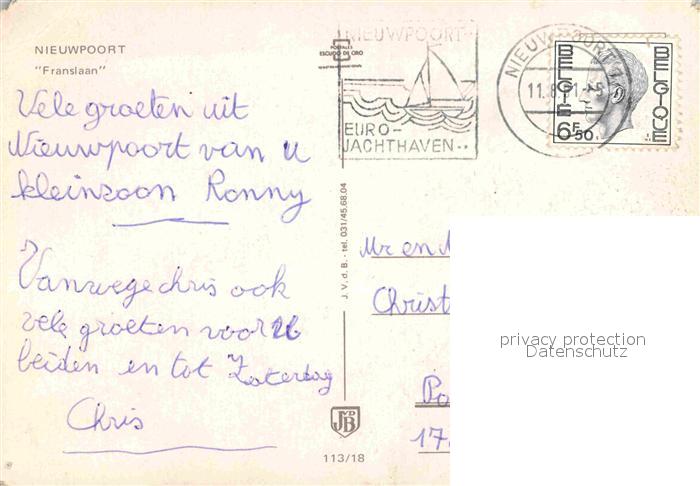 72912145 carte postale Nieuwpoort West-Vlaanderen Franslaan postalisch gelaufen Erhaltung siehe scans [LiesaD40] KatCode: 11070038000469