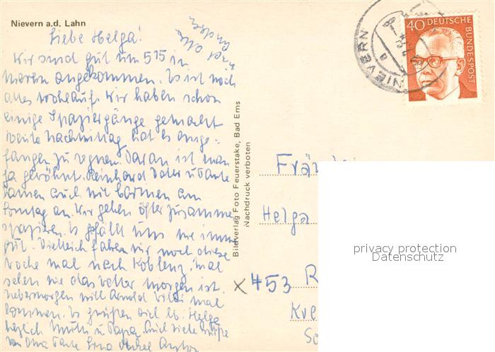 73705856 alte Postkarte Nievern Panorama Lahntal postalisch gelaufen Erhaltung siehe scans [FriedD77] KatCode: 11110007141098