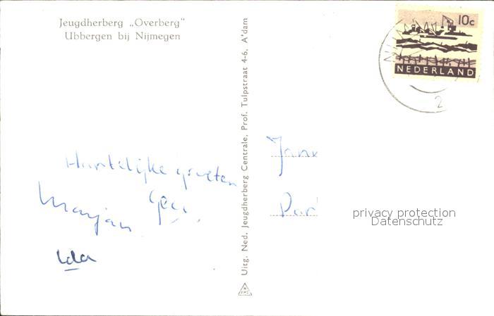 alte Postkarte Nijmegen Jeugdherberg Overberg Ubbergen postalisch gelaufen Erhaltung siehe scans